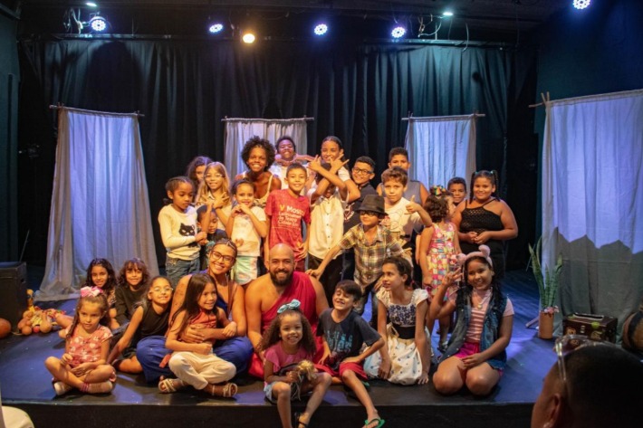 Apresentação do espetáculo infantil da Cia de Teatro Cidade Livre, Entre Letras: Encantados, em duas sessões no Teatro de Bolso Cidade Livre para as crianças da rede municipal de educação e para a comunidade local.